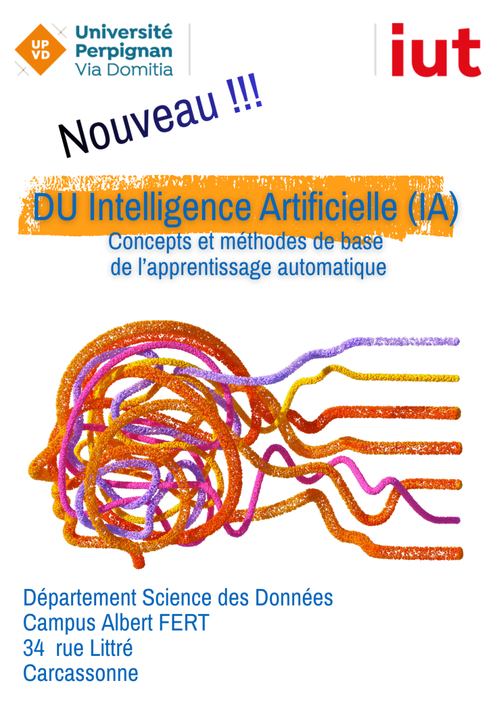 L’antenne carcassonnaise de l’IUT Perpignan Via Domitia ouvrira une Diplôme Universitaire (DU) Intelligence Artificelle (IA) afin d’étudier les concepts et les méthodes de base de l’apprentissage automatique. Les étudiants, qui feront partie de l’IUT Science de données, découvriront les bases théoriques et pratiques de l’IA moderne. Les enseignements qui leur seront dispensés leur permettront de concevoir et d’évaluer des modèles capables de traiter des données numériques, visuelles et textuelles. Réparties sur une vingtaine de vendredi, les 126 heures de cours se déroulent en présentiel dès le début du mois de septembre et jusqu’à la fin du mois de mars de l’année suivante.