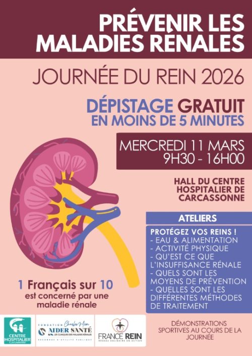 Comme chaque année, du 9 au 14 mars 2026 aura lieu la semaine nationale de dépistage gratuit des maladies rénales.
