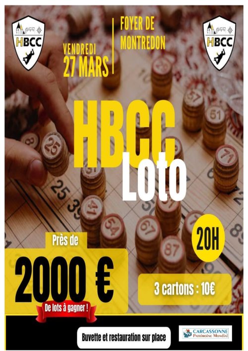Agenda des manifestations Loto HBCC Attraction - Jeux Foyer de Montredon vendredi 27 mars 20h00 Foyer de Montredon Nombreux lots à gagner. 10€ les 3 cartons. Buvette et restauration sur place. Zoom de l'image Votre contact HBCC - Hand-ball club Carcassonnais 04 68 47 00 77 hbccadmi1@gmail.com www.hbccarcassonnais.com