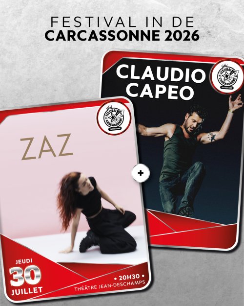 Agenda des manifestations Zaz + Claudio Capeo [Variété Française] Festival IN Musique Théâtre Jean-Deschamps jeudi 30 juillet 20h30 Théâtre Jean-Deschamps Deux voix populaires et puissantes de la chanson française se réunissent pour une soirée unique en double plateau : entre l’énergie débordante et la liberté musicale de Zaz, la sincérité et les hymnes fédérateurs de Claudio Capéo, ces deux concerts promettent une soirée généreuse et résolument festive au cœur de la Cité Médiévale. Zoom de l'image 20h30 : ZAZ Depuis « Je veux » en 2010, ZAZ s’est imposée comme une voix unique de la scène musicale, mêlant pop, chanson française et jazz avec une intensité rare. Sa voix singulière et son univers authentique ont conquis le coeur de milliers de fans à travers le monde. En 2025, elle revient avec son sixième album, intime et profondément humain, un disque salué par la critique et adoré du public. Porté par une tournée à guichets fermés à travers le monde, ZAZ s’apprête également à enflammer les festivals cet été. Sur scène, elle est à la fois généreuse et bouleversante, capable de transmettre une énergie électrisante tout en touchant au plus profond. Sur scène, ZAZ offre un moment unique, empreint d’émotion et de sincérité. www.zazofficial.com Zoom de l'image 22H : Claudio Capeo Artiste multi-récompensé et déjà fort de plus d’1,5 million d’albums vendus, Claudio Capéo s’impose comme l’une des voix les plus singulières et aimées de la scène française. « Un jour, toute la tristesse prendra fin », écrivait l’un des grands poètes du 21ème siècle. À l’écoute de son nouvel album, on se surprend à croire que Claudio Capéo en signe la bande-son. Car derrière la douce mélancolie de ses chansons se cache toujours une lueur d’espoir, une énergie qui relève et rassemble. Avec son dernier opus «Nouveau souffle» disponible depuis le 21 novembre 2025, Claudio livre un témoignage d’une rare sincérité. Ce « nouveau souffle », celui de l’accordéon ou des poumons remis à neuf, est là pour porter la parole des laissés pour compte (Speranza, Qui a dit ça) et les aider à chanter, crier leur issue rêvée, fantasmée. www.claudio-capeo.com Zoom de l'image Achetez vos places Tarif(s) Placement libre : 59€* Carré Or : 79€* *Frais de location inclus.Seules les places en carré d’or sont numérotées. Votre contact PAC Billetterie Centre de Congrès du Dôme Entrée parking du Dôme Du lundi au jeudi de 10h à 12h30 et de 14h à 17h30 Le vendredi de 10h à 12h30 - Fermé l'après-midi 04 68 11 59 15 pacbilletterie@mairie-carcassonne.fr pac-billetterie.tickandlive.com