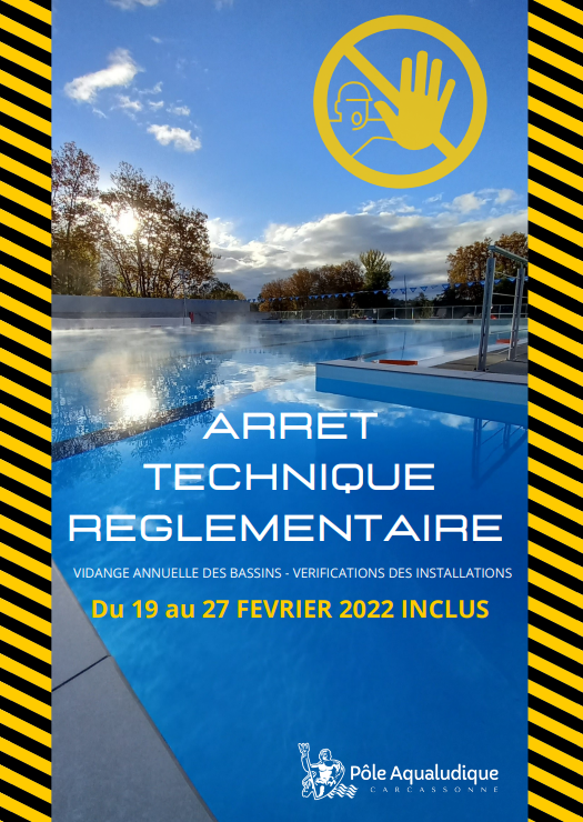 A exporter Activé date panneau mar 15/02/2022 - 12:00 date panneau fin sam 19/02/2022 - 12:00 ligne 1 Du 19 au 27 février ligne 2 Fermeture du Pôle ligne 3 Aqualudique pour ligne 4 vidange annuelle et ligne 5 vérifications des ligne 6 installations image panneau Afficher seulement image Désactivé Tourisme - Loisirs